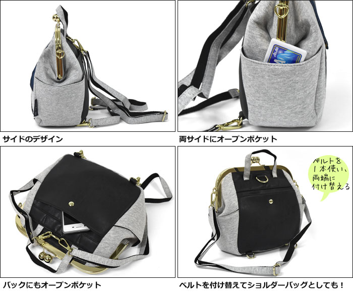 ■ リュック・ショルダーバッグ・ハンドバッグとして使える3way仕様! ■ 両サイドとバックにオープンポケット。