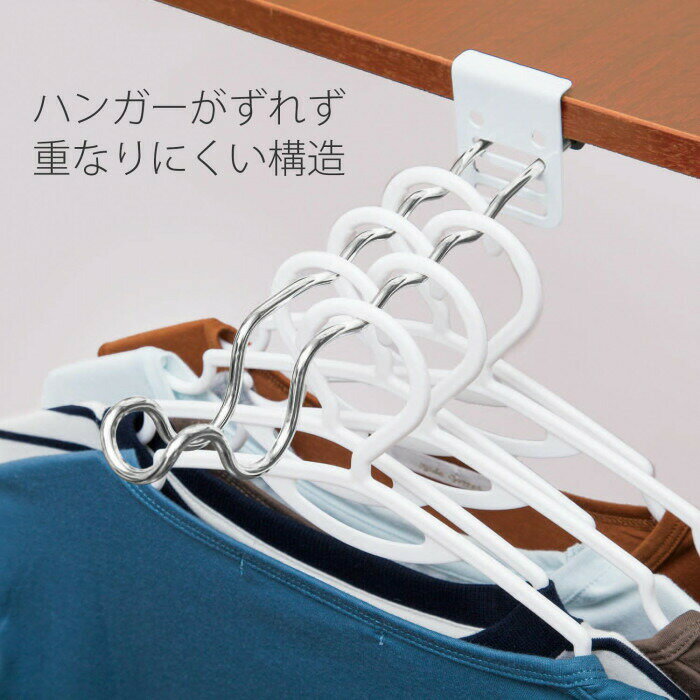 両側に位置をずらした溝は、衣類ハンガーを掛けても重なりにくくズレにくい!2個組。