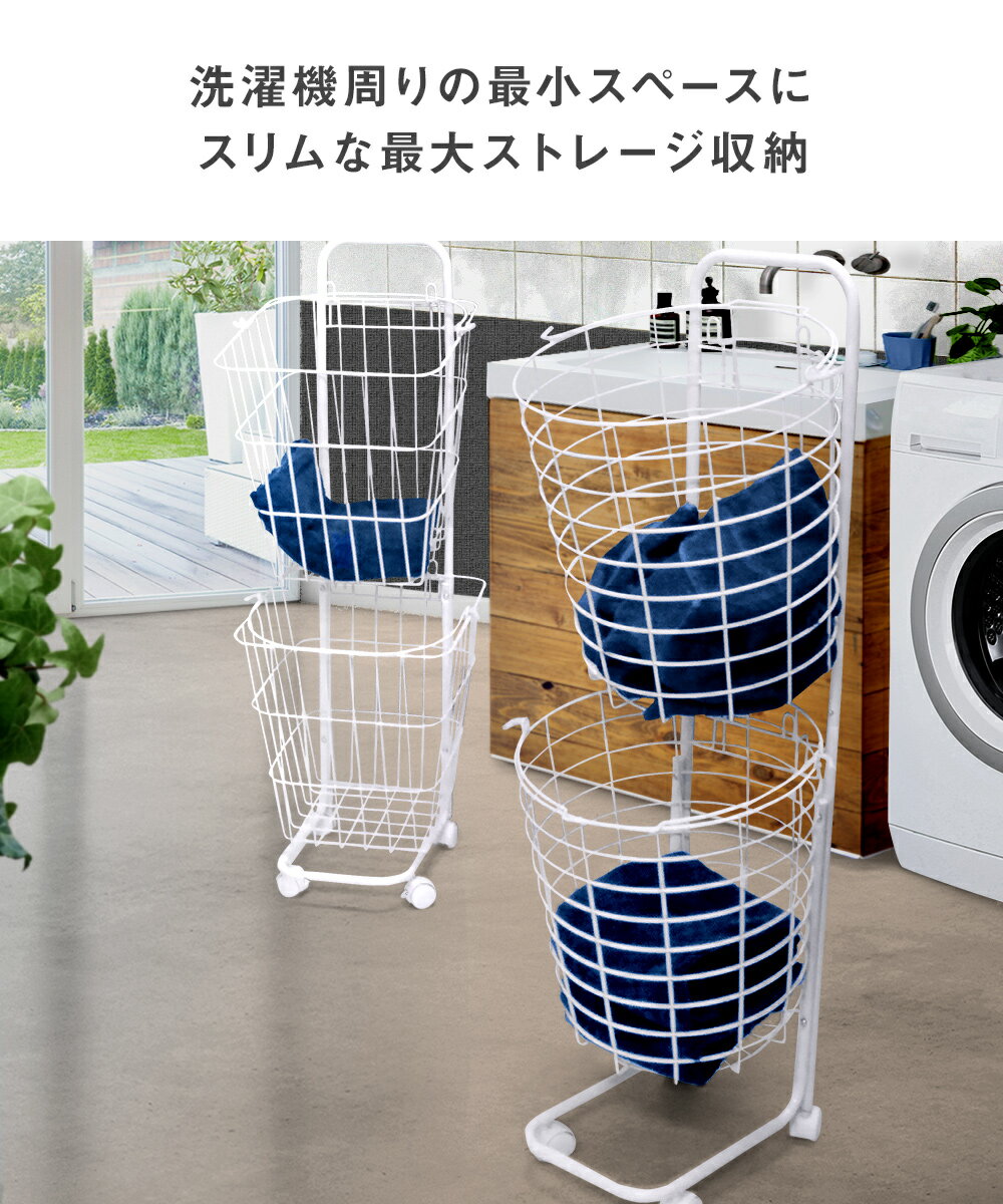 商品仕様 ランドリーバスケット 【丸型】 サイズ:(約)縦40×横35×高さ107cm カゴ寸法:(約)直径34×高さ36cm カゴ耐荷重:(約)7kg カゴ容量:合計(約)50L (1つあたり約25L) 【角型】 サイズ:(約)縦33.2×横33.7×高さ101cm カゴ寸法:(約)縦33×横33×高さ36.5cm カゴ耐荷重:(約)7kg カゴ容量:合計(約)50L (1つあたり約25L) 生産国:中国 材質:スチール(粉体塗装) 付属品:六角レンチ 組み立て式 ランドリースタンド Z型使用時:(約)縦60×横117×高さ117cm コの字型使用時:(約)縦60×横60×高さ117cm 三角型使用時:(約)縦50×横60×高さ117cm 収納時(約)縦60×横6×高さ117cm 耐荷重:(約)8kg 生産国:中国 材質:樹脂コーティングスチールパイプ 部品:ABS樹脂 ねじ類:スチール(メッキ) 組み立て式(工具不要) 注意事項 ■本品は組み立て式です。