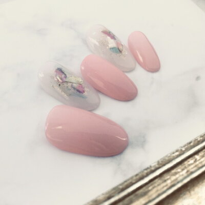 ネイルチップ ブライダル つけ爪 かわいい ショート ロング 成人式 nail プレゼント 母 短い爪 小さい爪 大きい爪 ベリーショート ちび爪 結婚式 ウェディング 付け爪 ジェルネイル●ベビーピンクスモーキーカラーのクラッシュシェルストーン