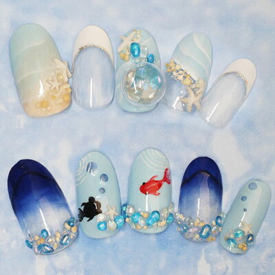夏アートに活躍する涼しげなストーンのネイルパーツ。