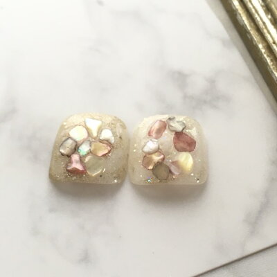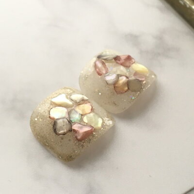 フットネイル ネイルチップ ペディチップ 足用チップ 親指2枚選べるサイズでぴったりネイルジェルネイルでサロン風仕上がり!マリンやビーチで夏ネイル☆浴衣にも☆●シャイニーラメマーブルシェルクラッシュストーンゴールド〈商品番号1567〉 a/n